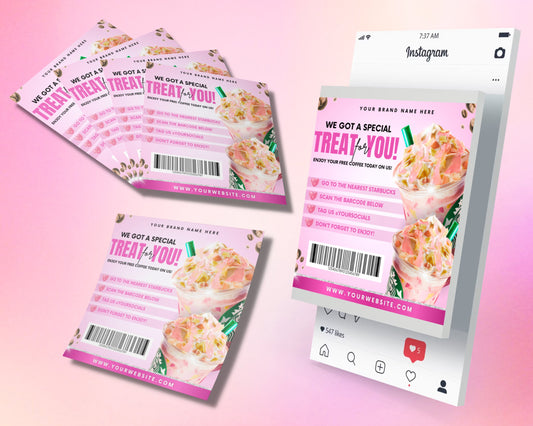 Coffee Treat For You Flyer, DIY Flyer Template Design, Starbucks Giveaway Flyer, Coffee On Me Flyer, Premade Buy A Coffee Gift Card Flyer