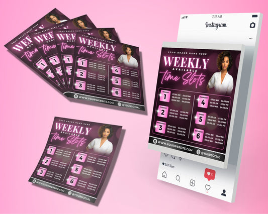 Weekly Availability Flyer, DIY Flyer Template Design, Weekly Available Booking Flyer, Time Slots Flyer, Premade Appointment Calendar Flyer