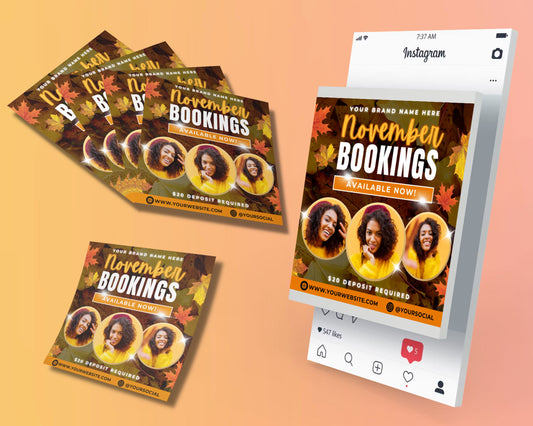 November Bookings Flyer, DIY Flyer Template Design, Book Now Hair Flyer, Fall Appointment Flyer, Beauty Flyer, Premade Autumn Booking FlyerSale -