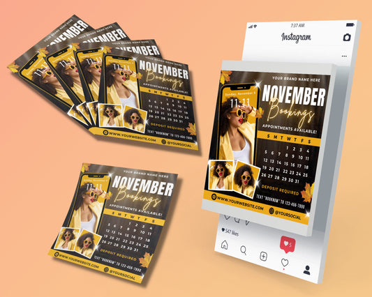 November Bookings Flyer, DIY Flyer Template Design, Book Now Flyer, Fall Appointment Flyer, Beauty Flyer, Premade Lash Hair Calendar Flyer