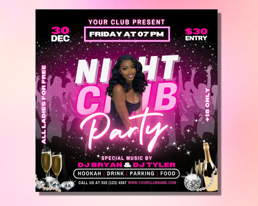 Club Flyer, DIY Flyer Template Design, Event Flyer, Party Invitation Flyer, Club DJ Party Invite, Social Media Flyer, Premade Editable FlyerSale -