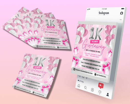 1K Giveaway Flyer, DIY Flyer Template Design, Milestone Contest Flyer, Win Product Raffle Ticket Flyer, Premade Instagram Anniversary FlyerSale -