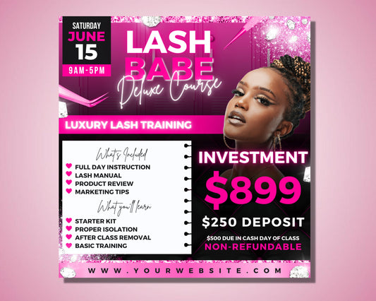 Lash Training Flyer, DIY Flyer Template Design, Lash Course Flyer, Eyelash Extension Training Class, Lash Makeup Masterclass Flyer