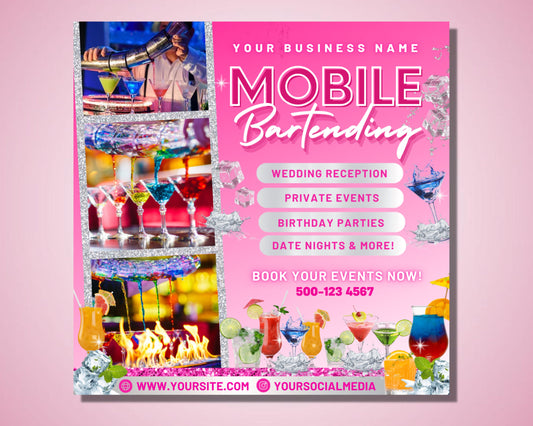 Mobile Bartending Flyer, DIY Flyer Template Design, Bar Flyer, Bartender Flyer, Mixologist Flyer, Social Media Flyer, Premade Editable Flyer