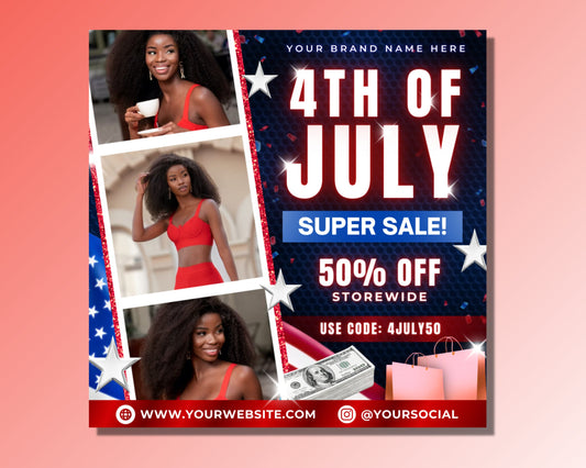 Fourth of July Flyer, DIY Flyer Template Design, Hair Lash Sale Flyer, Independence Day Flyer, Premade Instagram 4th of July Flyer Post