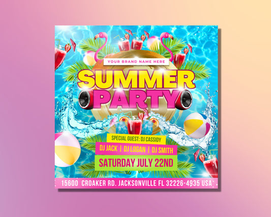 Summer Party Flyer, DIY Flyer Template Design, Pool Party Invite Flyer, Summer Break Party Flyer, Summer Event Flyer, Premade Instagram Post
