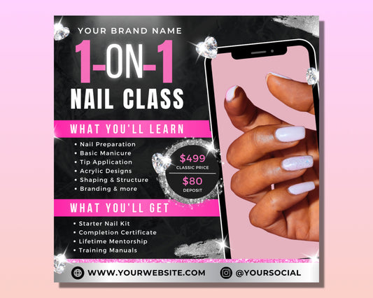 Nail Class Flyer, DIY Flyer Template Design, Nail Training Flyer, Nails Course Flyer, Nail Tech Flyer, Hair Nail Lash Flyer, Premade Flyer