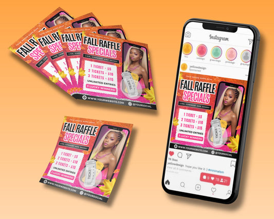 Regular price $2.99Regular priceUnit price / per$6.95Sale price $2.99Save, MONEY💸, TIME⌛, and EFFORT💪 with Our 4x Bundle Flyer Template! This eye-catching and vibrant bundle features everything you need to promote your salon or beauty business this season. From exciting raffle specials to irresistible giveaways and booking incentives, each flyer is expertly designed to grab attention and engage your audience. Perfect for hairstylists, beauty professionals, and salon owners, this versatile flyer set will help you attract clients, boost bookings, and enhance your brand’s visibility. Edit and personalize on Canva for seamless, professional results that capture the spirit of fall!