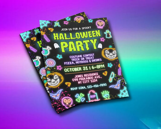 Regular price $2.99Regular priceUnit price / per$5.00Sale price $2.99Save, MONEY💸, TIME⌛, and EFFORT💪 Light Up Your Spooky Celebration with Our Neon Halloween Party Flyer Template! Featuring vibrant neon colors and playful Halloween-themed illustrations, this eye-catching flyer is perfect for promoting your upcoming Halloween party. Whether it’s for a costume contest, trick-or-treat event, or just a night of spooky fun, this customizable template is ideal for adding a festive and fun touch to your event invites. The bold design is sure to grab attention and get everyone excited for a night of ghosts, ghouls, and good times!