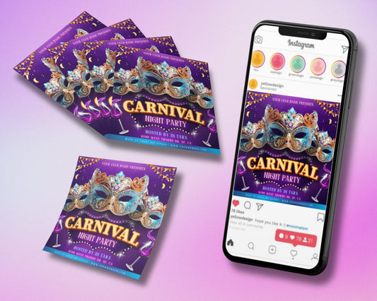 Carnival Night Party Flyer, DIY Flyer Template Design, Dance Party Flyer, Club Event Flyer, Premade Celebration Masquerade Nightlife FlyerSale -