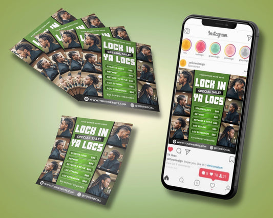 Regular price $2.99Regular priceUnit price / per$5.00Sale price $2.99Save MONEY💸, TIME⌛ and EFFORT💪 Unlock fresh looks with our dynamic Men's Loc Style Deals Flyer template! Perfect for barbershops, stylists, and grooming professionals, this design highlights a variety of loc services—from starter locs to retwists, styling, and extensions. With bold visuals and clear pricing, it’s easy to showcase your special offers and attract new clients. The modern layout ensures your brand stands out, while essential booking details and deposit information keep everything organized. Promote your services with style and help clients achieve the perfect locs that match their vibe!