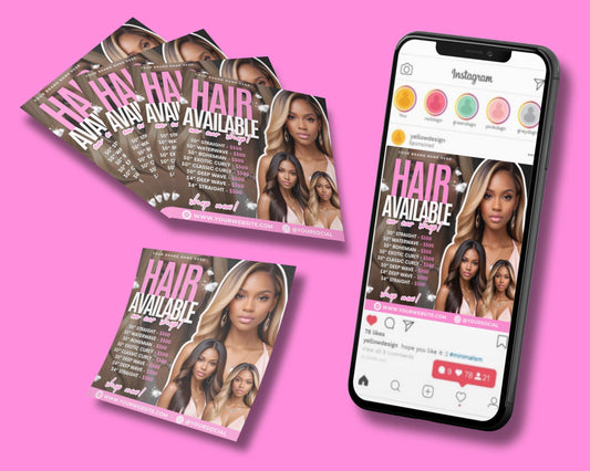 Regular price $2.99Regular priceUnit price / per$5.00Sale price $2.99Save MONEY💸, TIME⌛, and EFFORT💪 Promote your premium hair collection effortlessly with our vibrant Hair Availability Flyer template! Designed for hair vendors and beauty brands, this eye-catching flyer highlights a range of luxurious styles, from sleek straight bundles to exotic curls and deep waves. Showcase your inventory, pricing, and shop details all in one sleek design that grabs attention and encourages clients to shop now. Perfect for in-store promotions, pop-up shops, and online marketing, this template will help you attract new customers and boost sales. Elevate your brand with this professionally crafted flyer and make every client feel fabulous!