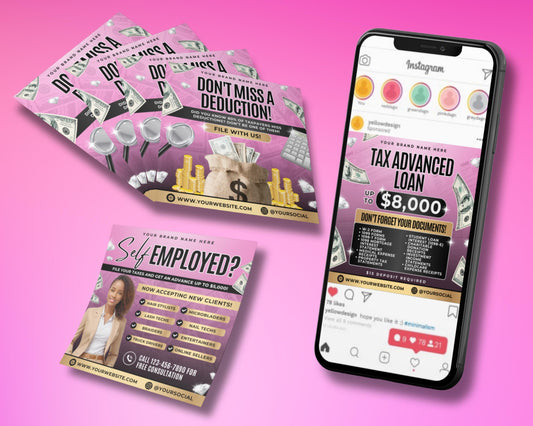 Regular price $2.99Regular priceUnit price / per$6.95Sale price $2.99Save, MONEY💸, TIME⌛, and EFFORT💪 BOOST your TAX business with our eye-catching Tax Preparation Flyer Bundle! This professionally designed set is perfect for promoting tax services to self-employed individuals, freelancers, and small business owners. Highlight your offerings, from tax advance loans to ensuring no deductions are missed. Ideal for tax professionals looking to attract new clients, this bundle provides a sleek, modern look that builds trust and credibility. With customizable elements, this template lets you present your services with ease and professionalism, helping you connect with clients during tax season and beyond.