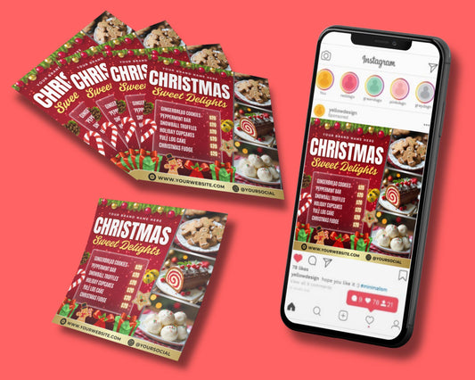 Regular price $2.99Regular priceUnit price / per$5.00Sale price $2.99Save MONEY💸, TIME⌛ and EFFORT💪 Indulge your customers' holiday cravings with our Christmas Sweet Delights Flyer Template! Perfect for bakeries, cafés, and holiday events, this festive design highlights an irresistible menu of seasonal treats, from gingerbread cookies to yule log cakes. With eye-catching graphics and warm holiday colors, this flyer is crafted to attract sweet-toothed shoppers and elevate your brand's holiday offerings. Use this professionally designed template to boost sales, spread holiday cheer, and make your Christmas treats the talk of the season!