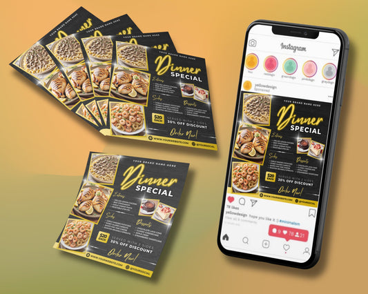 Regular price $2.99Regular priceUnit price / per$5.00Sale price $2.99Save MONEY💸, TIME⌛, and EFFORT💪 with our Dinner Deals Flyer Template! Perfect for restaurants, cafés, and catering businesses, this eye-catching design highlights your mouthwatering entrées, sides, and desserts in a sleek, professional layout. Featuring special discounts and irresistible meal combos, this flyer is designed to attract more diners and boost sales effortlessly. Whether promoting a limited-time offer or showcasing your signature dishes, this template ensures your food looks as good as it tastes! Order up success today! 🍴🔥