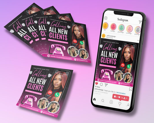 Regular price $2.99Regular priceUnit price / per$5.00Sale price $2.99Save, MONEY💸, TIME⌛ and EFFORT💪 with our eye-catching New Clients Flyer Template! Perfect for hairstylists, beauty professionals, and salon owners, this modern and stylish design helps you attract fresh faces and fill up your appointment slots with ease! With a bold call-to-action, sleek layout, and professional aesthetic, this flyer is the ultimate tool to grow your brand, increase visibility, and welcome new clients in style. Elevate your marketing and watch your clientele soar!