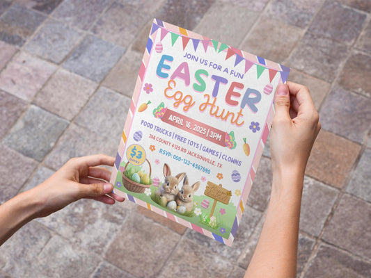 Regular price $2.99Regular priceUnit price / per$5.00Sale price $2.99🌸🐰 Hop into Easter Fun! Save TIME, MONEY, and EFFORT with our Easter Egg Hunt Flyer Template! Perfect for community events, school celebrations, and family gatherings, this vibrant and playful design captures the excitement of Easter with colorful eggs, adorable bunnies, and festive decorations. This flyer will grab attention and bring families together whether you’re organizing a fun-filled hunt, games, or special activities. Make your Easter event unforgettable with this charming and professionally designed template! 🌷🥕
