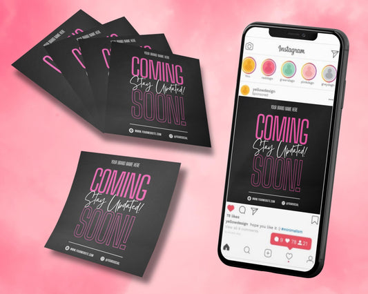 Coming Soon Flyer, DIY Flyer Template Design, New Business Flyer, New Products Launch Flyer, Pink And Black Flyer, Premade Website FlyerSale -