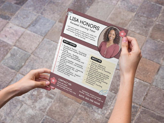 Regular price $3.99Regular priceUnit price / per$8.18Sale price $3.99Save, MONEY💸, TIME⌛, and EFFORT💪 with our modern Tutoring Services Flyer template! Perfect for educators, tutors, and academic coaches, this professionally designed flyer highlights your expertise, subjects offered, and contact details in an engaging layout. Whether you're promoting one-on-one tutoring, small group sessions, or online classes, this sleek and customizable template ensures your services stand out. Attract more students, boost your credibility, and make learning accessible with a flyer that speaks to success!