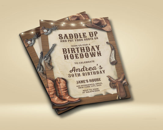 Western Hoedown Party Invitation, DIY Flyer Template Design, Country Western Birthday Cowboy Cowgirl Party Invite, Premade Wild West PartySale -