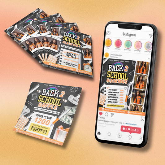 Regular price $1.99Regular priceUnit price / per$2.98Sale price $1.99Back to School Raffle Flyer Template – perfect for stylists, braiders, and beauty businesses ready to create buzz this season! This editable Canva flyer helps you promote exciting giveaways like a $200 raffle to boost engagement and attract clients ahead of the school year. Whether you're offering a wig install, discount voucher, or styling service prize, this professional design grabs attention both online and in person. Comes with 3 bonus flyers to help round out your back-to-school marketing strategy!