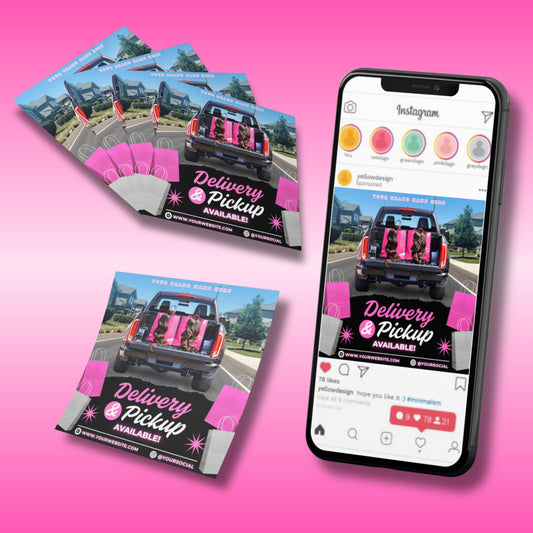 Regular price $2.99Regular priceUnit price / per$5.98Sale price $2.99Make your deliveries stand out with this bold and editable Delivery & Pickup Flyer Template, perfect for wig sellers, beauty businesses, and hair stylists offering local delivery or curbside pickup. Designed in Canva, this eye-catching flyer helps showcase your services, build trust with customers, and boost your professional brand. Whether you’re offering bundles, lashes, or salon services, this customizable design makes marketing quick and stylish. 🎀📦