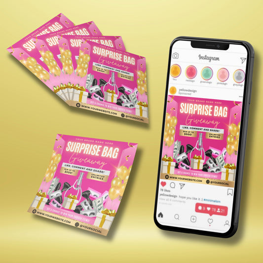 Regular price $2.99Regular priceUnit price / per$5.98Sale price $2.99Make your next beauty promo go viral with this Surprise Bag Giveaway Flyer Template, perfect for lash techs, hair stylists, MUAs, and beauty brands! This editable Canva template helps you create eye-catching giveaway posts to boost engagement and attract new clients on Instagram, Facebook, or your website.