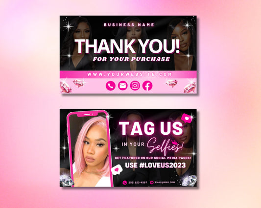 Thank You Business Card, DIY Canva Business Card Template Design, Salon Marketing Cards, Pink Promotional Card, Premade Beauty Business Card