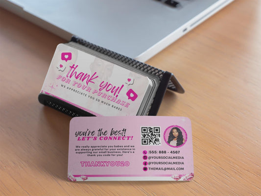 Regular price $0.99Regular priceUnit price / per$1.50Sale price $0.99Save MONEY💸, TIME⌛, and EFFORT💪 with our chic Beauty Thank You Business Card Template! Perfect for beauty professionals, boutique owners, and entrepreneurs, this eye-catching design adds a personal touch to every purchase. Express gratitude to your customers while showcasing your brand's personality with vibrant colors, stylish typography, and space for essential contact details. Featuring customizable fields for discounts, QR codes, and social media links, this template ensures lasting connections with your clients. Elevate your customer experience and leave a lasting impression with these gorgeous, ready-to-edit thank-you cards!