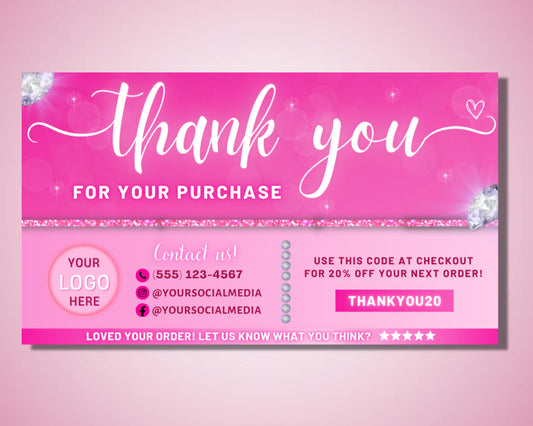 Thank You Card, DIY Marketing Cards Template Design, Small Business Thank You Cards, Business Card, Thank You For Order Packaging InsertSale -