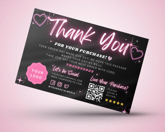 Thank You Card, DIY Canva Business Card Template Design, Salon Discount Cards, Neon Pink Promo Card, Premade Beauty Business QR Code CardsSale -