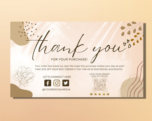 Minimalist Thank You Card, DIY Marketing Cards Template Design, Thank You For Order Packaging Insert, Small Business Thank You Cards