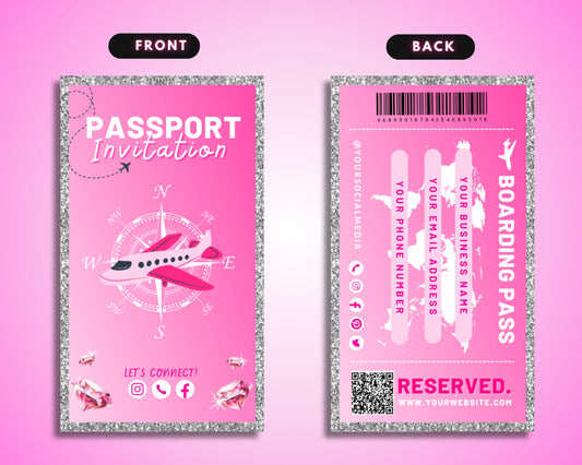 Passport Business Card, DIY Canva Business Card Template Design, Marketing Cards, Boarding Pass Business Card, Premade Small Business Card