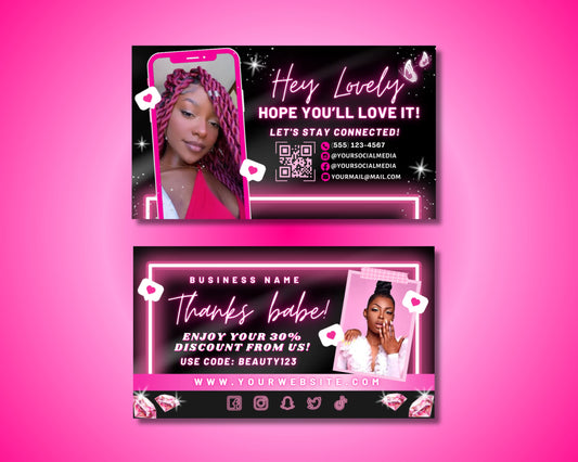 Thank You Card, DIY Marketing Cards Template Design, Neon Hair Business Cards, Lash Thank you Cards, Thank You For Order Packaging Insert