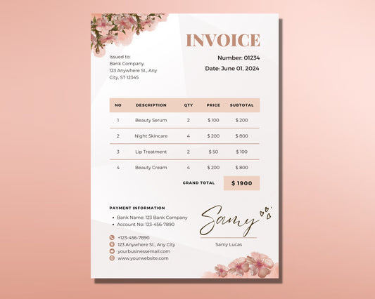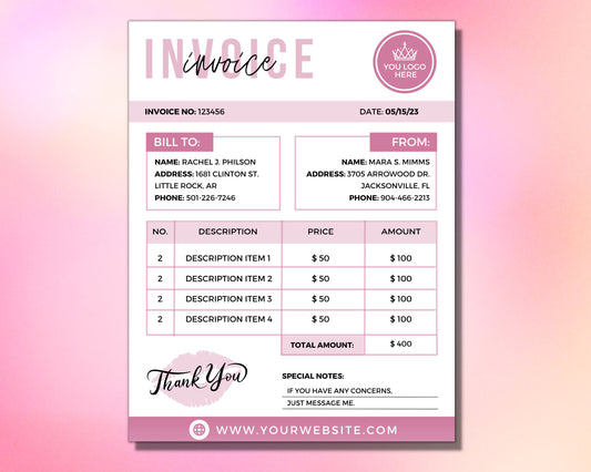 Sales Invoice Template, DIY Invoice Template Design, Beauty Business Invoice, Receipt Template, Makeup Service Invoice, Premade InvoiceSale -