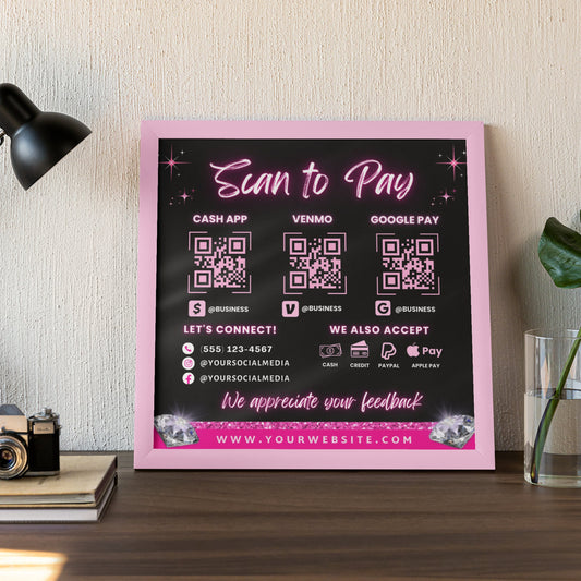 Scan To Pay Sign, DIY Canva Sign Template Design, Google Pay Sign, QR Code Venmo Sign, Cash App Paypal Sign, Premade Payment Method Sign