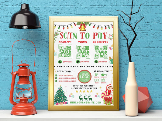 Christmas Scan To Pay Sign, DIY Canva Sign Template Design, QR Code Venmo Sign, Cash App Paypal Google Pay Sign, Premade Mobile Payment SignSale -