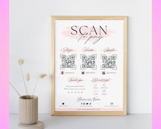 Scan To Pay Sign, DIY Canva Sign Template Design, Google Pay Sign, QR Code Venmo Sign, Cash App Paypal Sign, Premade Payment Method SignSale -