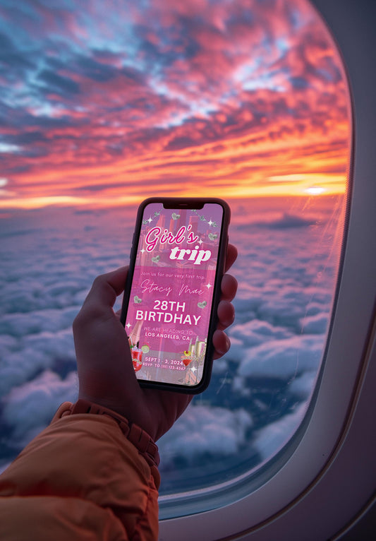 Animated Girls Trip Invitation, DIY Template Design, Girls Itinerary Vacation Invite, Weekend Bday Party Evite, Premade Travel Celebration