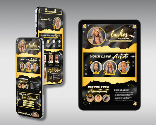 Regular price $6.99Regular priceUnit price / per$13.90Sale price $6.99Save MONEY💸, TIME⌛, and EFFORT💪 with this stylish and professional Black and Gold Lash Acuity Scheduling Template. This template features a sleek design that highlights your lash services and artist information. Ideal for lash technicians and salon owners, this template helps you manage appointments efficiently and attract new clients. Customize the template with your branding and contact information to create a polished and professional look.